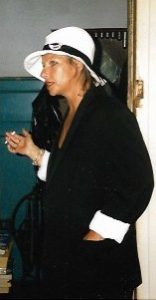 NYC, 1990, Tailored shorts were all the rage, worn with tights, for a long legged look, and zipped ankle boots,bodies, worn under, this one stretch fabric with v’neck by London Designer. Hair tied  back and worn with headband. easy and elegant as well as hip.